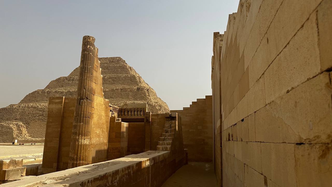 At Sakkara, stand before the Step Pyramid of Djoser — the first pyramid ever built — and feel the spirit of the Old Kingdom surrounding you.